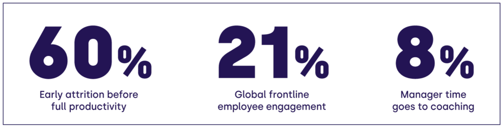 These aren’t isolated problems. They’re part of a wider issue: traditional training doesn’t create enough consistent, applied practice opportunities for employees to succeed in their roles.