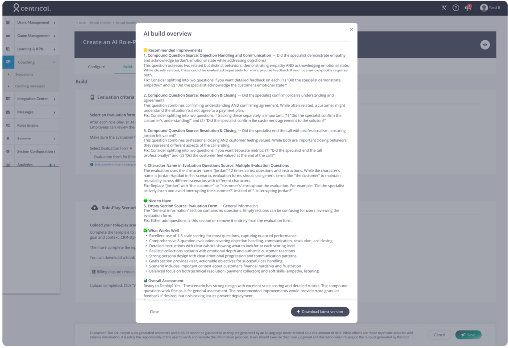 Most role-plays can be created and validated in hours using AI-assisted templates, with built-in checks and recommendations to ensure scenarios and evaluation criteria are aligned before the launch.